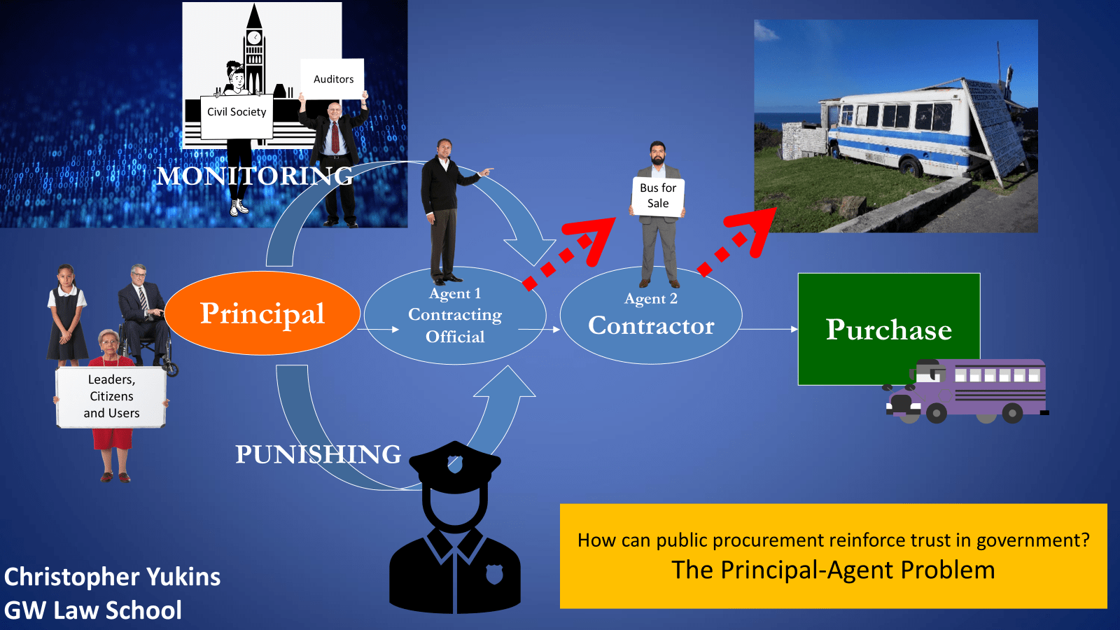 In his presentation, Professor Yukins argued that the principal-agent theory, see, e.g., Michael C. Jensen & William H. Meckling, Theory of the Firm: Managerial Behavior, Agency Costs and Ownership Structure (1976), broadly applied to public procurement for decades, see, e.g., Peter Trepte, Regulating Procurement (Oxford U. Press 2005); Christopher Yukins, A Versatile Prism: Assessing Procurement Law Through the Principal-Agent Model, 40 Pub. Cont. L.J. 63 (2010), offers a means of both predicting and mitigating losses of public trust in procurement.